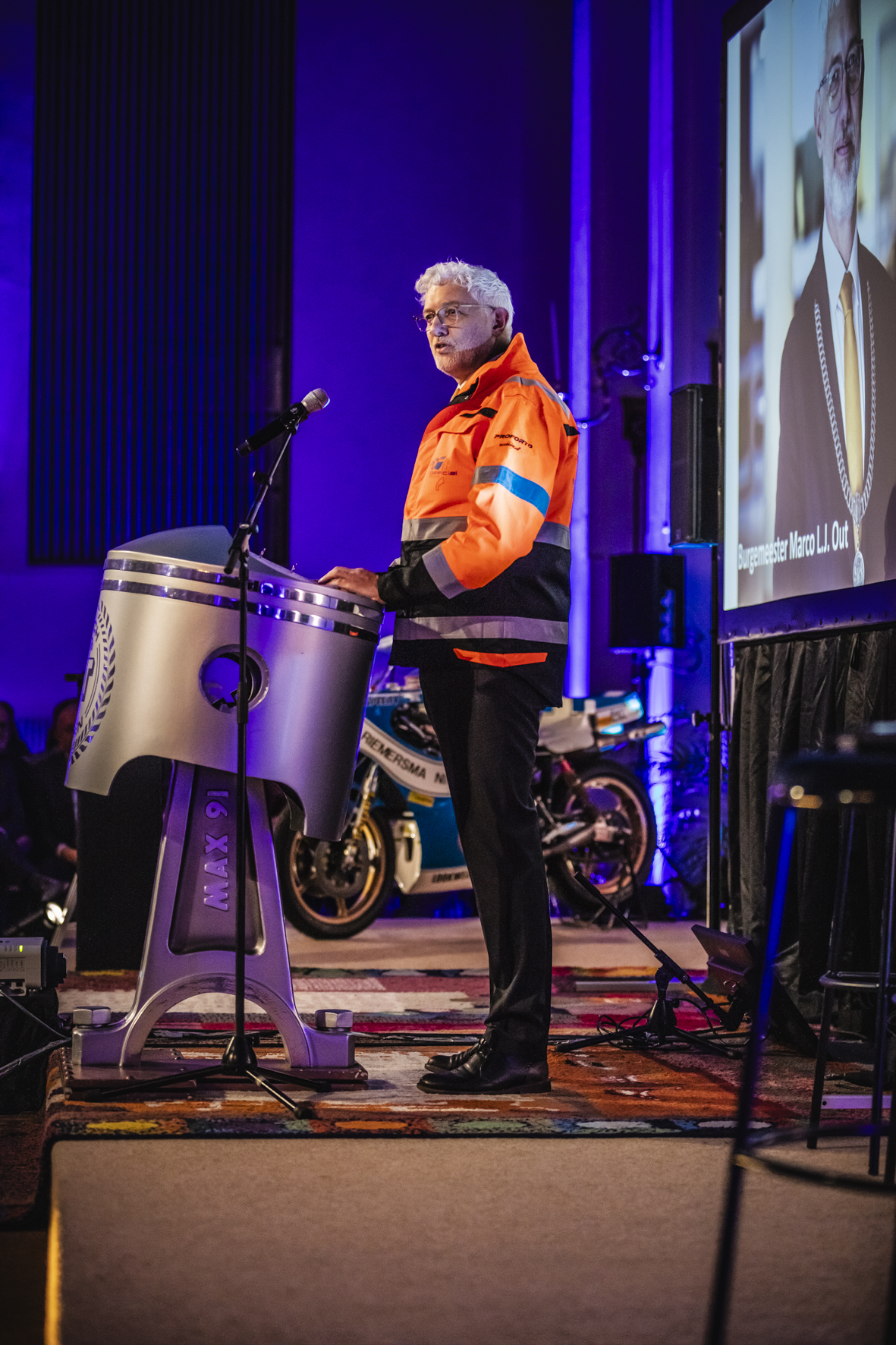 Burgemeester Marco Out trapte de avond af met een bijzonder eerbetoon aan alle vrijwilligers die het TT-spektakel mogelijk maken. Vervolgens nam Wil ‘De Witte Reus’ Hartog ons mee in zijn herinneringen aan zijn eigen TT-avonturen—van zijn eerste motorfiets tot zijn legendarische overwinning in 1977. Het publiek hing aan zijn lippen, en er werd menigmaal gelachen en geapplaudisseerd.