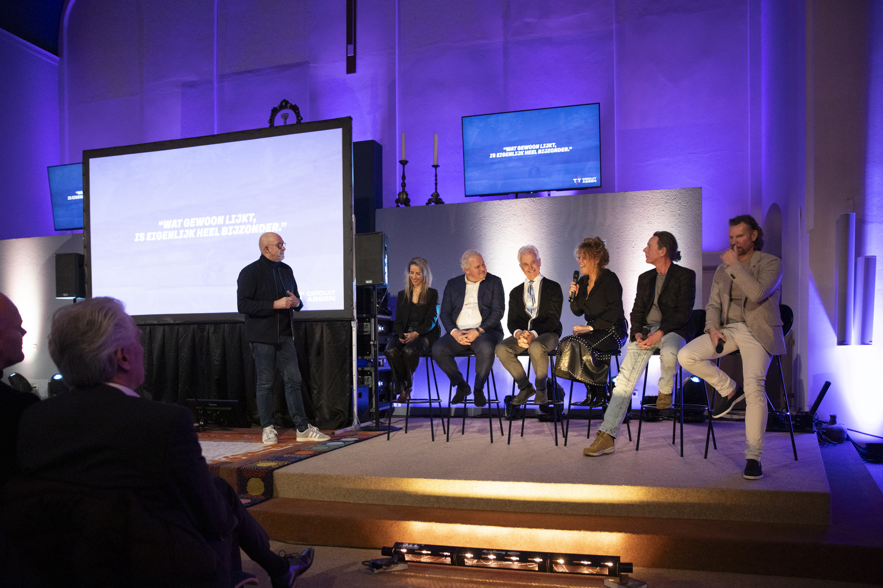 De avond stond geheel in het teken van 100 jaar TT Assen, en hoe! Onder de indrukwekkende gewelven van de Jozefkerk luisterden we naar racelegende Wil Hartog en andere bijzondere gasten zoals TT-voorzitter Arjan Bos, filmregisseur Roy Ferwerda en Sophie Timmer. Verhalen over vroeger, spannende vooruitblikken naar de jubileumeditie van de TT in 2025, en zelfs een glimp van de nieuwe TT-film—het was één en al beleving.
