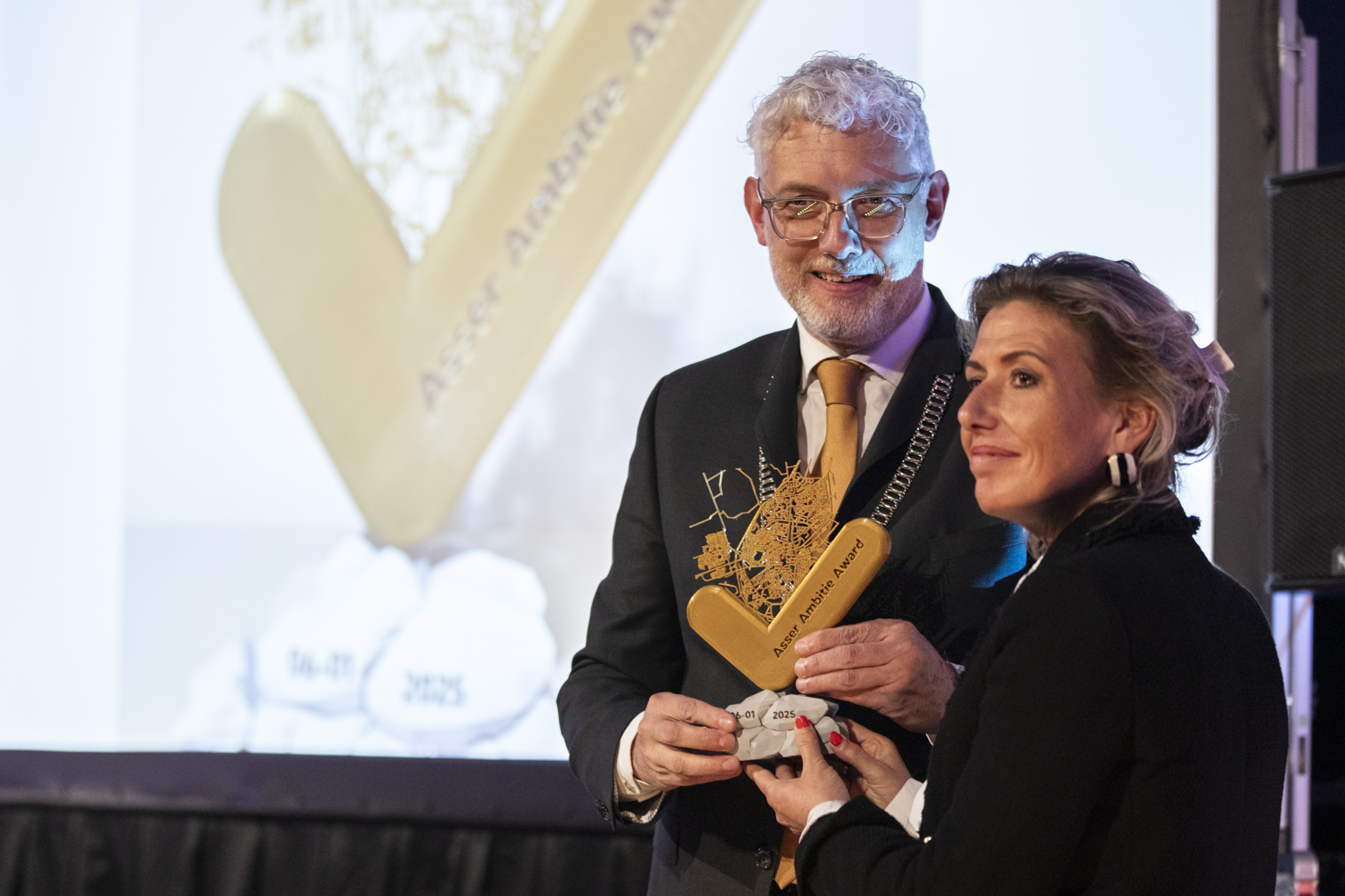 Tijdens de avond werd de allereerste Asser Ambitie Awarduitgereikt aan Lee van Dam. Omdat hij zelf niet aanwezig kon zijn, nam zijn dochter Hilde van Dam de award in ontvangst uit handen van burgemeester Marco Out. Van Dam heeft met zijn motorsportevenementen, zoals Jack’s Racing Day, een enorme bijdrage geleverd aan de zichtbaarheid van Assen. Zoals de burgemeester zei: “Benzine stroomt hem door de aderen, en de spin-off voor Assen is groot.” Een welverdiende erkenning voor zijn jarenlange inzet.